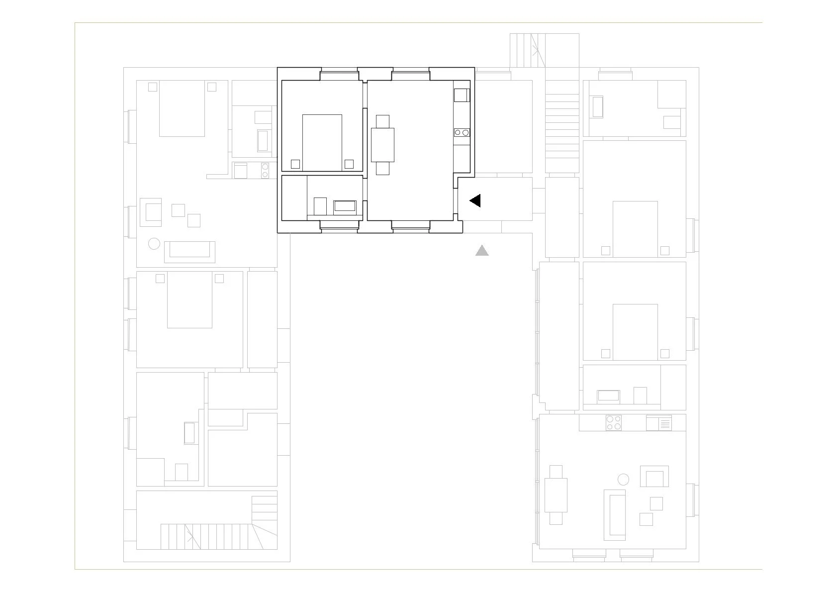 Diese Wohnung ist für 2 Personen (mit Kleinkind) geeignet. In der Wohnung befinden sich ein Schlafzimmer (Doppelbett; 1,40m), ein Badezimmer, und ein Essbereich mit kleiner Küche. Die Wohnung ist ebenerdig. Zusätzlich existiert ein direkter Zugang zum historischen Innenhof mit Sitz- und Essgelegenheiten.